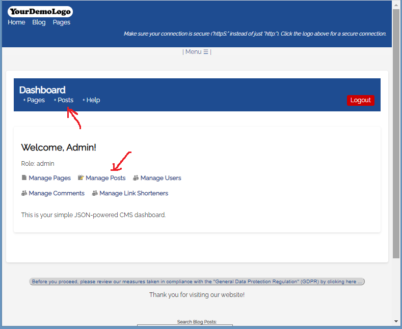 (Notice that I have also included a "Help" link in the Dashboard header, so you always have a direct link to the CMSbyCW documentation or FAQs, in case you need that resource).