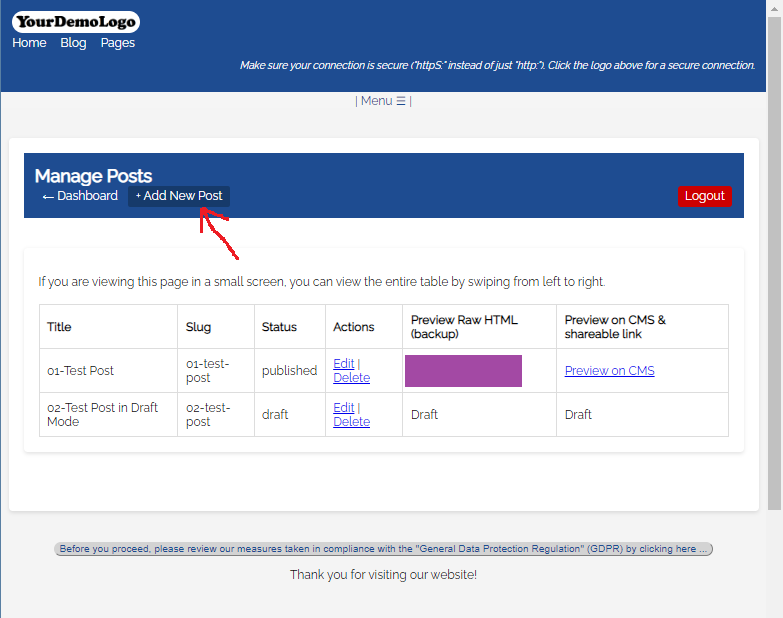 - You have to select "Published" mode for the new blog post to display on the Blog.