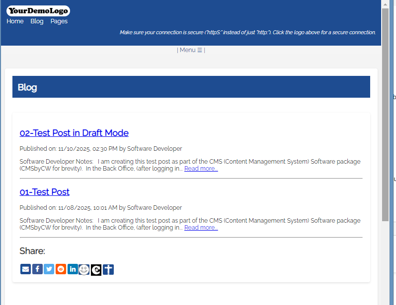 The Software Package comes with 1 Test Post that has a Status of "Published" and another Test Post that was created, but has a Status of Draft. You have the option to remove those 2 Test Posts, since I have already added also the "Help" module for tutorials.