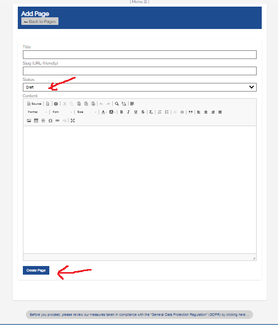 - When you select "Draft", it will not display on your website. Draft mode can only be viewed when you are logged in, and you can change the Status to "Published".