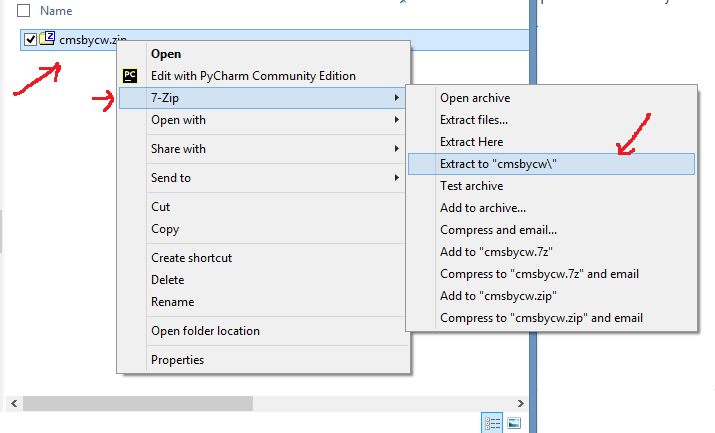 2) Hover your mouse to the file CMSbyCW.zip and then